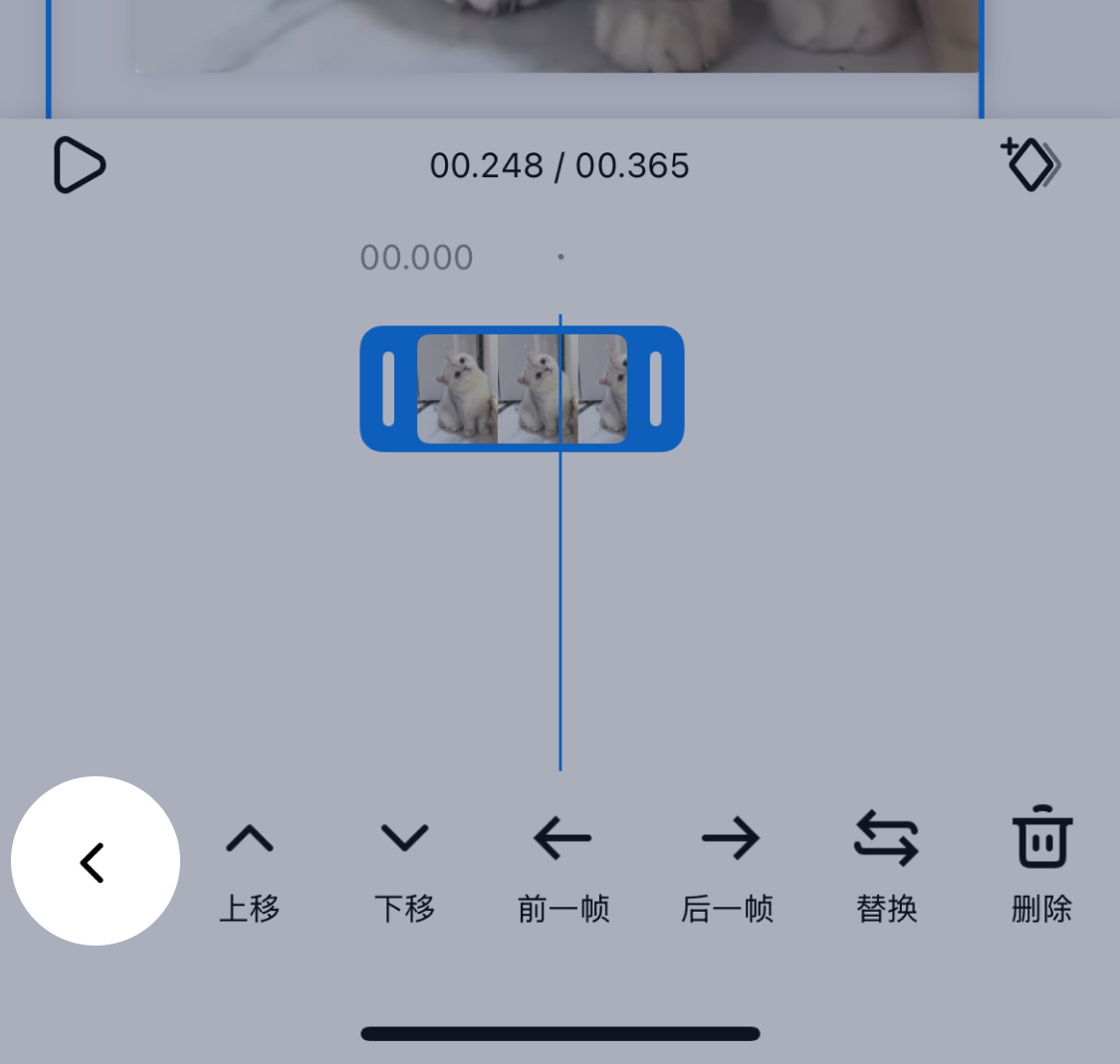 点击底部工具栏的返回按钮即可取消选择当前素材。