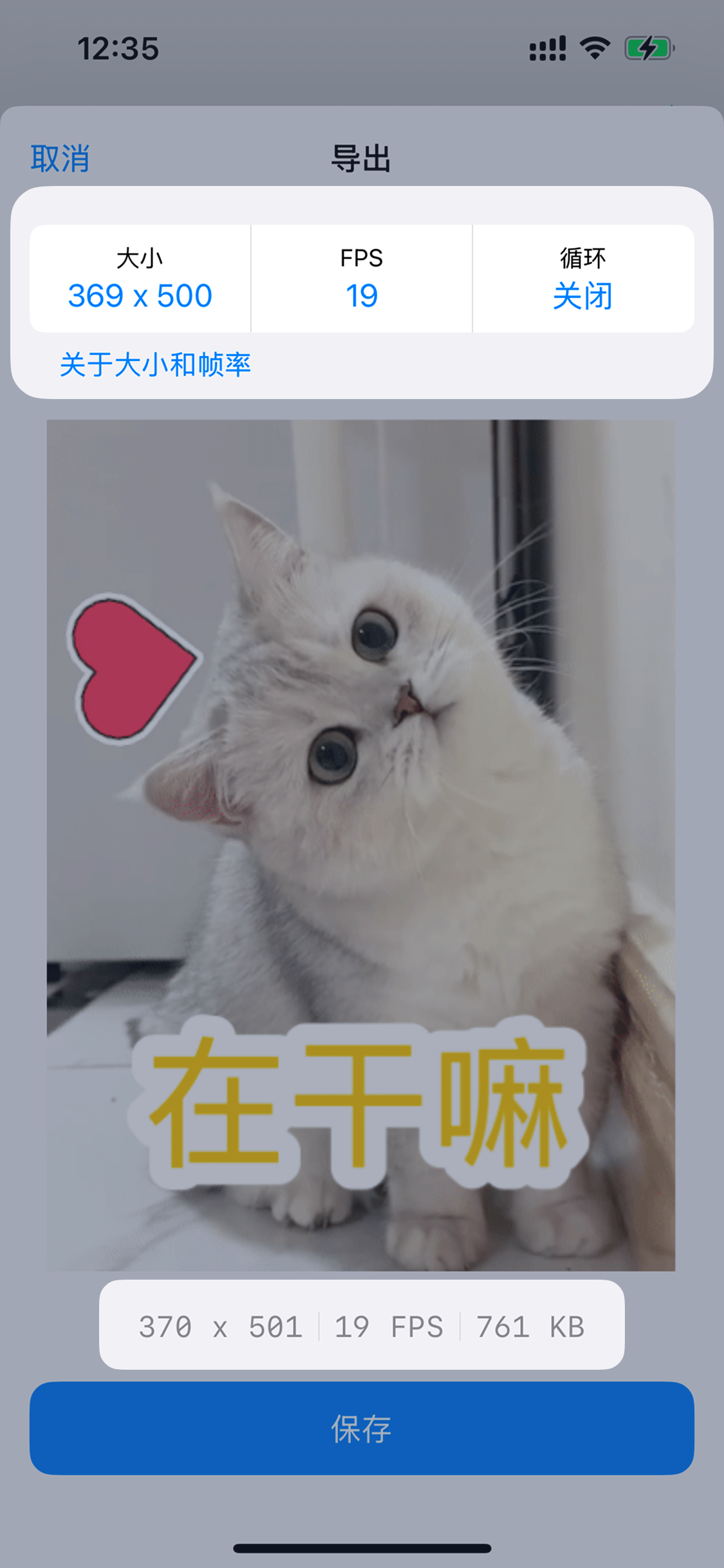 设置完成后,点击底部的保存按钮即可将 GIF 保存到相册中!