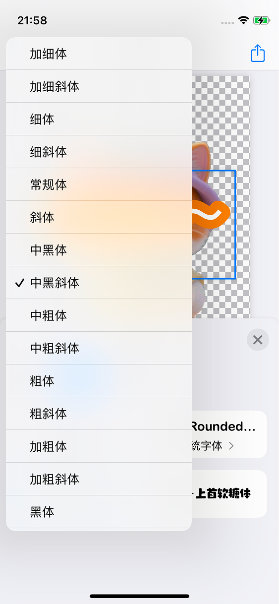 相同字体家族的字体会自动合并到一起,您可以点击字体名称来选择字体样式。