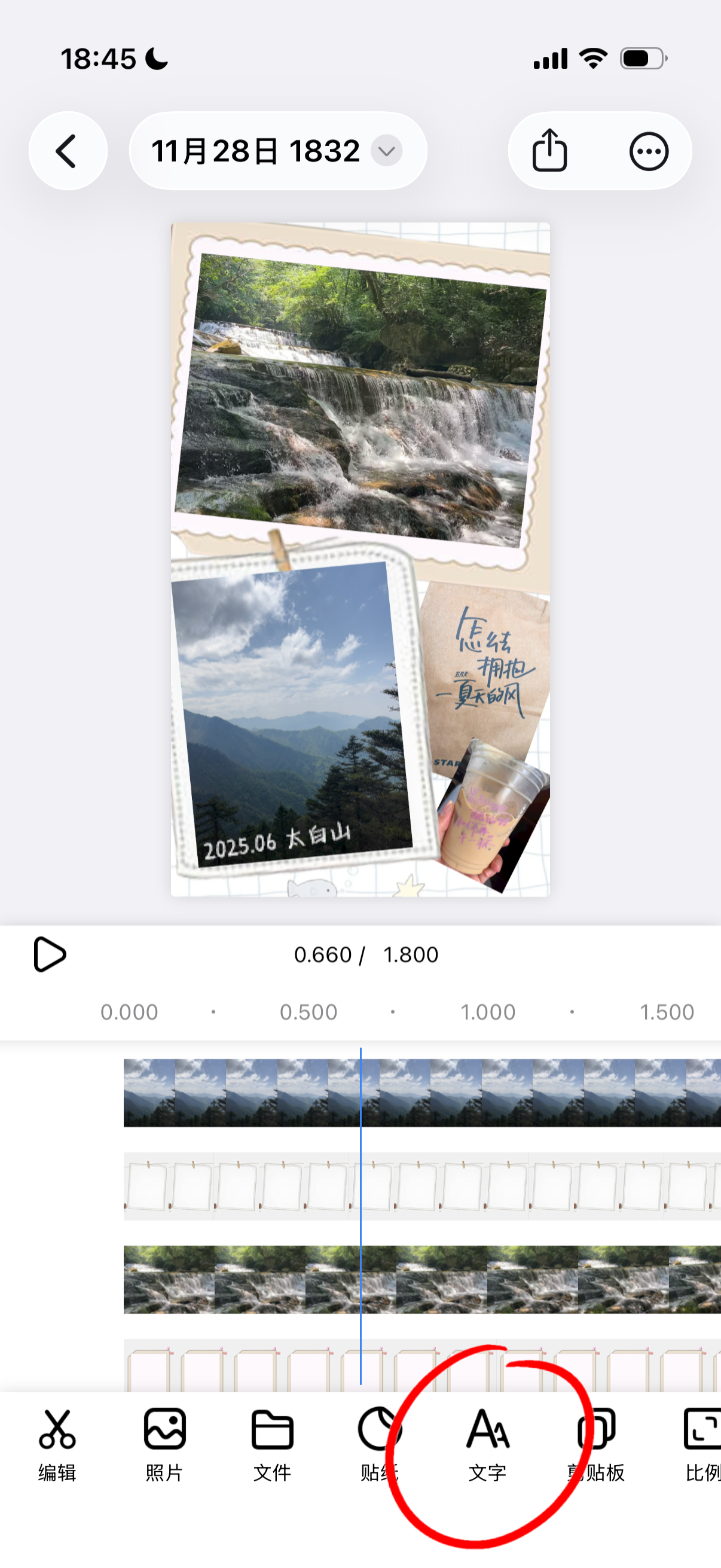 点击文字按钮,可以添加文本内容。