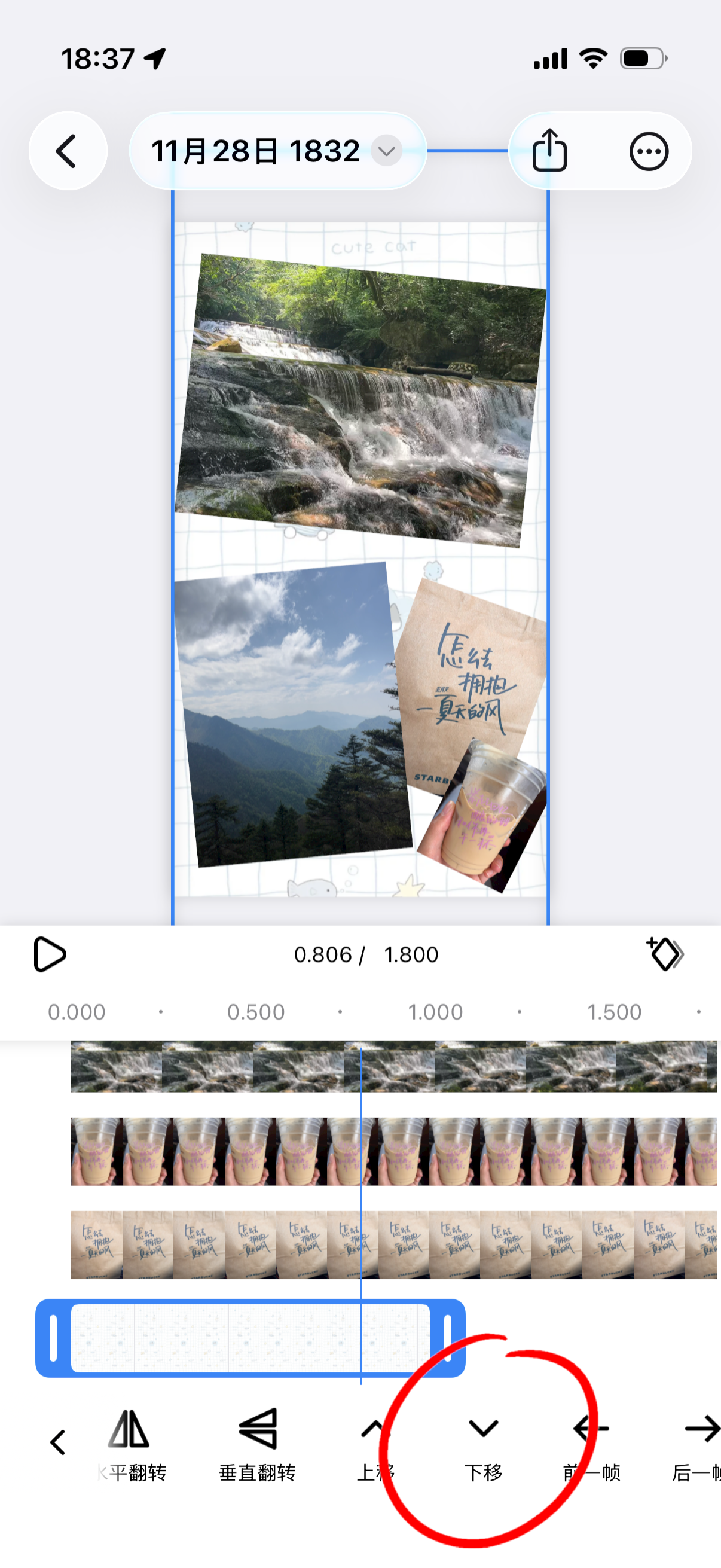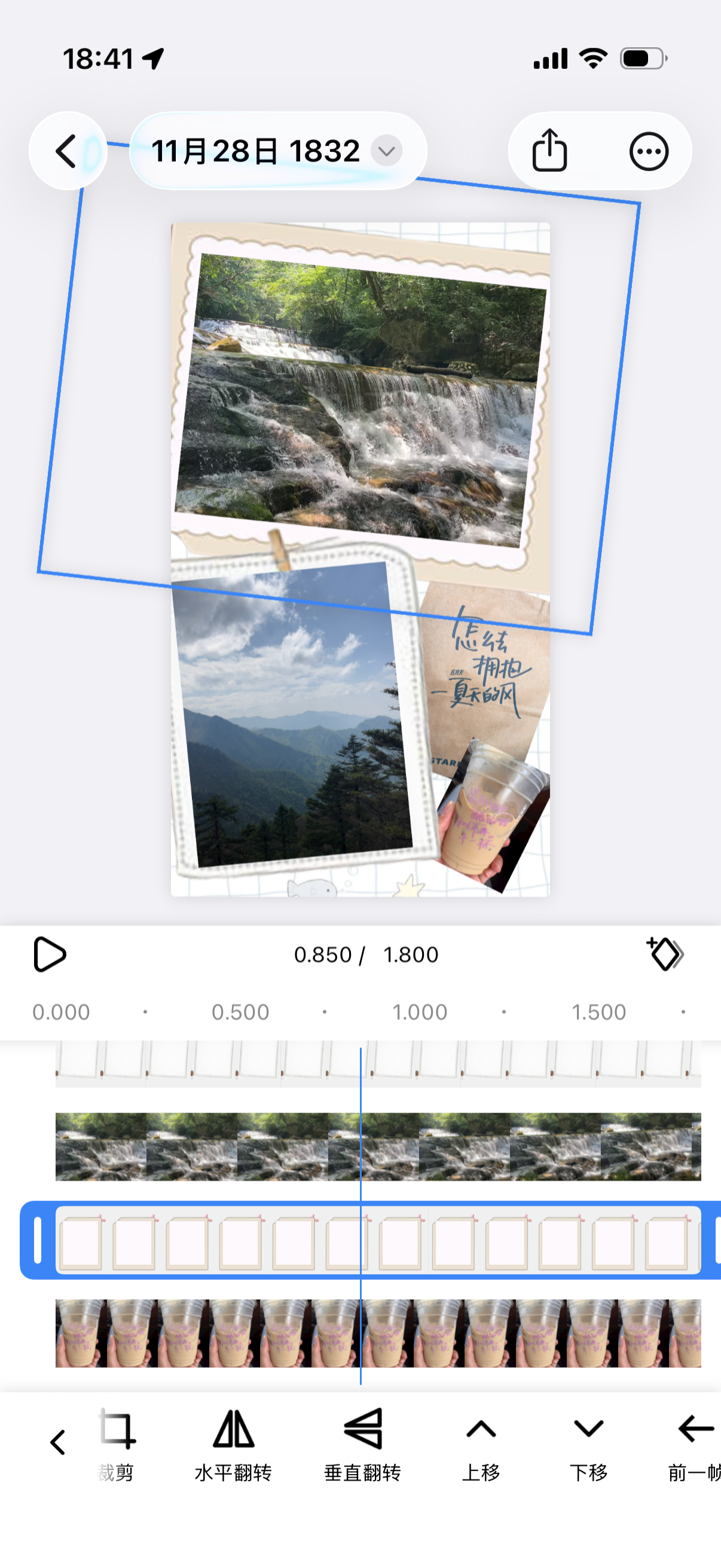然后点击照片按钮,来添加相框图片,并将其放置到对应实况照片轨道的下层,然后将其调整到合适的位置。