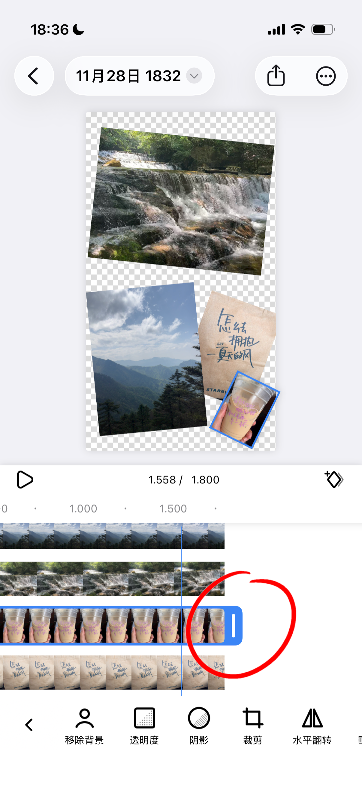 选中并调整每个素材右侧的剪辑指示器,将所有实况照片调整为相同的时长。